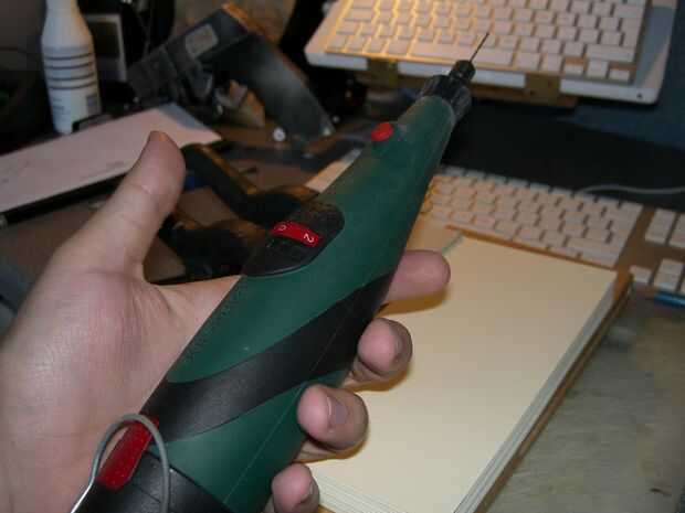 Ilustración 4 - manivela su herramienta hasta cerca de 3 tercios, si lo tienes demasiado rápido lo hacen producir demasiado calor creando un 'fuego interno' - he utilizado una broca de 1 mm. Distancia del taladro, asegúrese de poner un montón de presión, pero no te apresures.