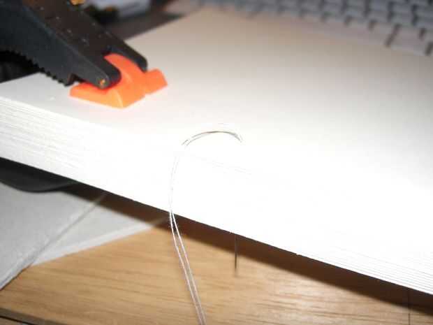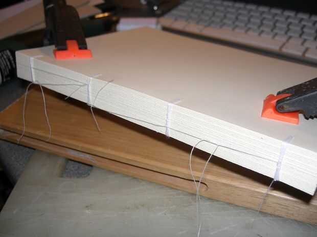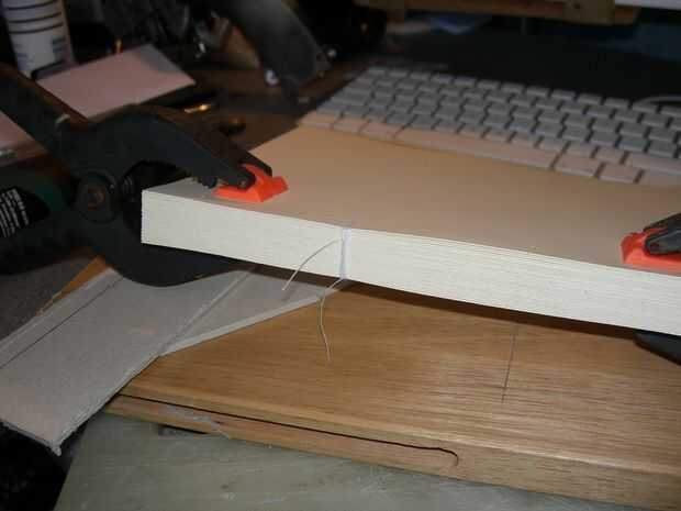 Imagen 1 - abrazadera de las páginas juntas, hice esto por aferrándose firmemente al libro, a continuación, desliza la tarjeta hacia fuera del paso anterior, ayuda a mantener las páginas perfectamente alineadas.