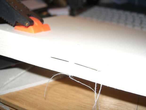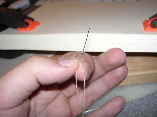Cuadro 2 - la aguja del hilo de rosca, quieres una longitud de hilo de unos 300mm de longitud. La aguja sí mismo quiere ser el más delgado que usted puede encontrar.