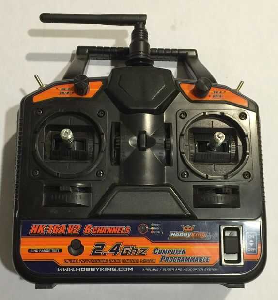 Recomiendo comprar un transmisor de 2,4 Ghz porque tiene gran variedad, baja interferencia y sin necesidad de cristales de canal. He comprado un transmisor de 6 canales ya que nos permite más opciones en el futuro. Una radio de canal 3 o 4 será más que suficiente para un básico robot.