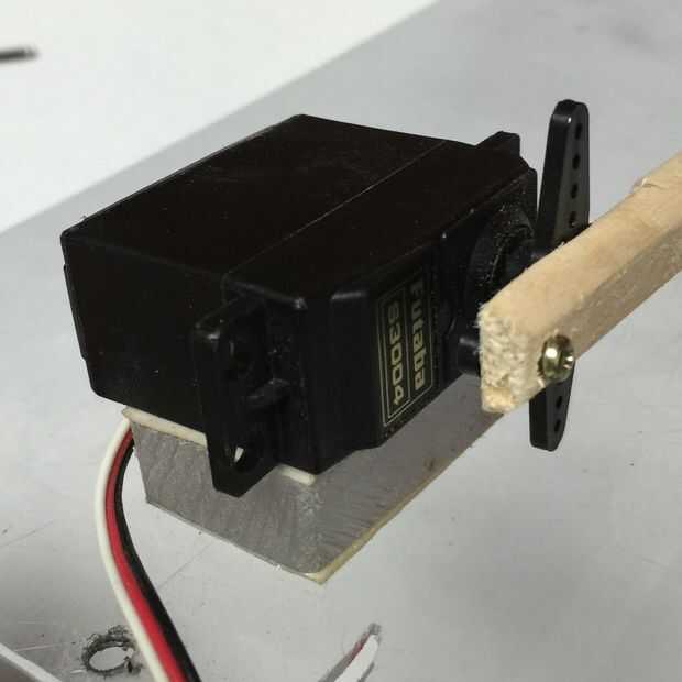 Como una característica adicional pegué un servo a la parte superior de la cubierta del robot que actúa como una palanca. Simplemente elegir un servo que vengo con uno de mis otros transmisores, pero hay cientos de servos que trabajan para esta aplicación. Lo que adjunta al final del brazo está totalmente hasta usted. Mi hijo trata de usarlo como un brazo de acaparamiento para que una garra habría sido una buena opción. Montado el servo encima de un bloque de plástico para permitir que gire sin golpear la tapa.