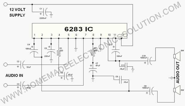 Simple de amplificador de Audio estéreo 6283 (2 / 4 paso)