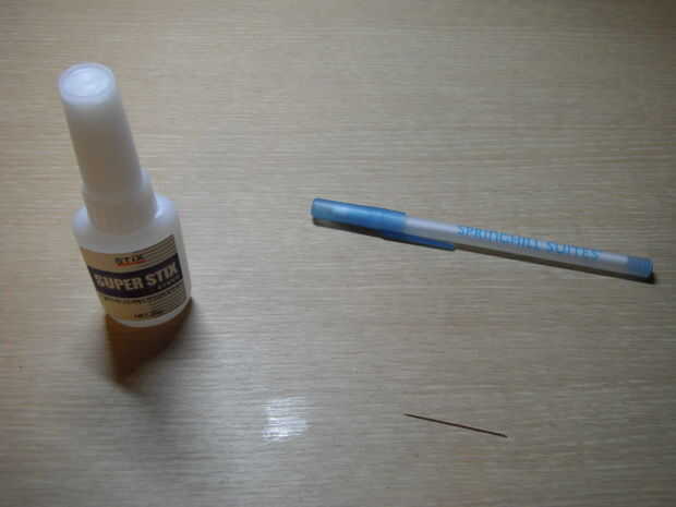 Para hacer esta cuchilla oculta, necesitarás un bolígrafo de tapa-estilo básico, aguja y pegamento. Usé pegamento, pero hotglue también funcionará.