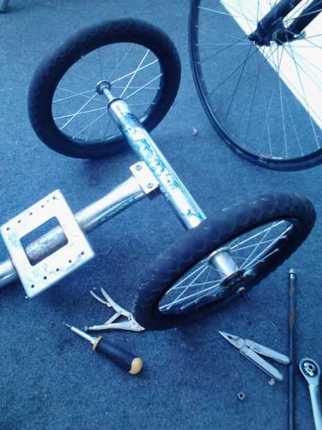Usted puede pedir lo que impide que los tapones volando durante uso. Solo la fricción no es suficiente. Lo que hice fue tener mi corte ferretería local e hilo de rosca de una varilla que se extiende desde una rueda a otra y reemplaza los pernos que corría por el centro de cada cubo de la rueda. Cuando se atornilla una tuerca en cada extremo, los ejes de rueda de permanecen firmemente en el lugar, permitiendo que las ruedas giren libremente.