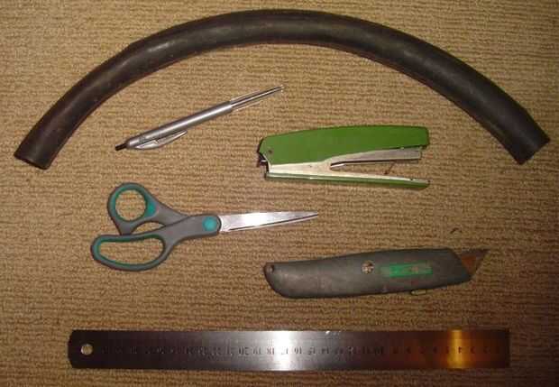 Un pedazo de llanta de bicicleta, cerca de 45 centímetros (18 pulgadas) de largo. La opción más sencilla es encontrar una llanta de una bicicleta de carreras, con una circunferencia de 65 mm (2 9/16"). Mayor diámetro también funciona.