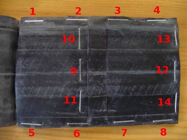 Alinee cuidadosamente y luego la grapa en el patrón mostrado en la segunda imagen. Por suerte el viejo diciendo, "medida dos veces, grapa una vez", no es realmente aplicable aquí. Si no está buscando buena, toma las grapas que hacia fuera y reemplazar. Los pequeños agujeros poco dejados cerrará para arriba debido a las propiedades mágicas del tubo interno.