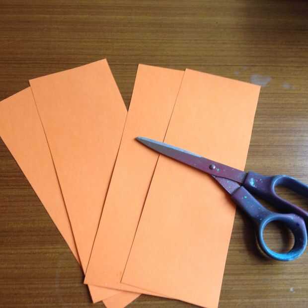 Tomar la pieza A4 de tarjeta naranja y cortar por la mitad en toda su longitud más corta para obtener 2 A5 tamaño piezas