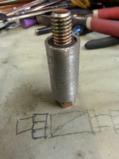 - Encontrar un caucho de manguera que se ajuste sobre el perno y dentro el tubo de acero.