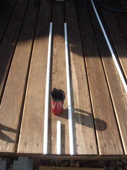 Corte 56 pulgadas ofrecen otra vez el mismo 2 pipas (usted será capaz de obtener dos secciones de cada poste, con una izquierda sobre pieza de 8 pulgadas). ¡ No tire, que se utilizará muy pronto.