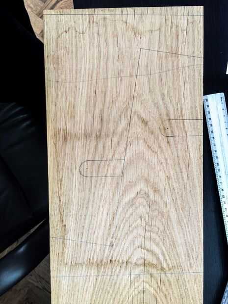 Imprimí mi tempate en un papel tamaño A4 y perforado de agujeros en puntos de interés por lo que podía dibujar dentro de esos agujeros en la madera.