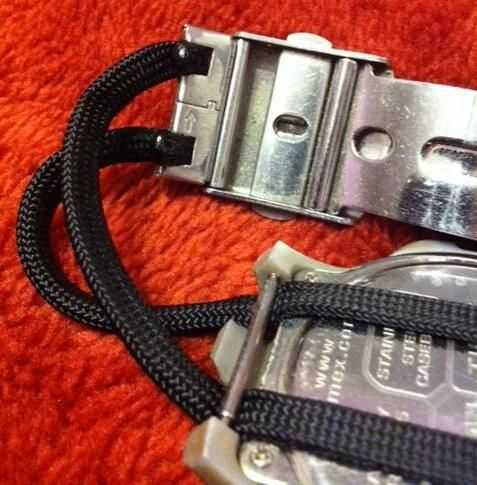 Esto logra dos cosas: reduce el diámetro de la cuerda, lo que le permite pasar por debajo de los pernos de reloj, y permite la envoltura aplanar a sí mismo, por lo que es cómodo en la muñeca.