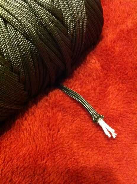 Luego retire los filamentos internos (blanco) 7 cada tira para que te queda solamente la envoltura del paracord.