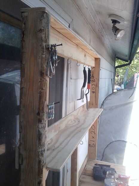 Añadido el estante superior para macetas más pequeñas. Añadido varios ganchos después de que sostenga las herramientas eléctricas más pequeñas.