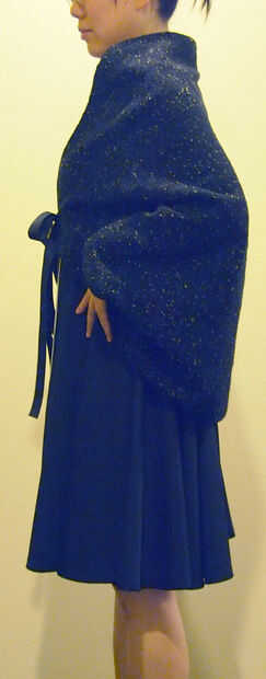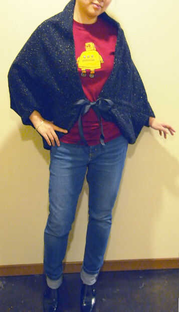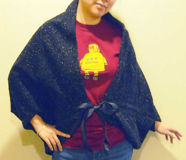 Usted puede vestir este encogiéndose de hombros con alfileres de diamantes de imitación o simplemente deje las cintas de grosgrain para un look casual! :) Coincide con mi camiseta Instructable perfectamente ;) La tela que elegí es una punto tela del Boucle. Pero cualquier tela suave funcionará muy bien.