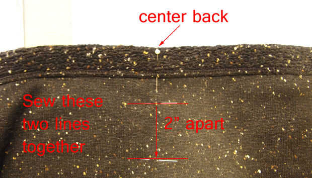 8, agregar un pliegue profundo 2" en el centro de la espalda superior.