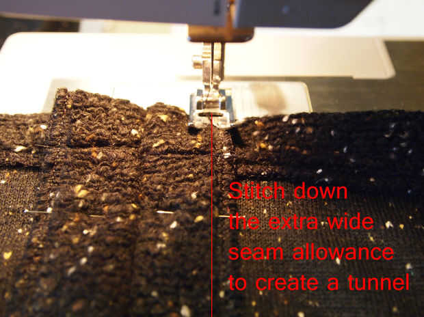 5, pulse Abrir el margen de costura y coser la costura hacia abajo para crear un túnel