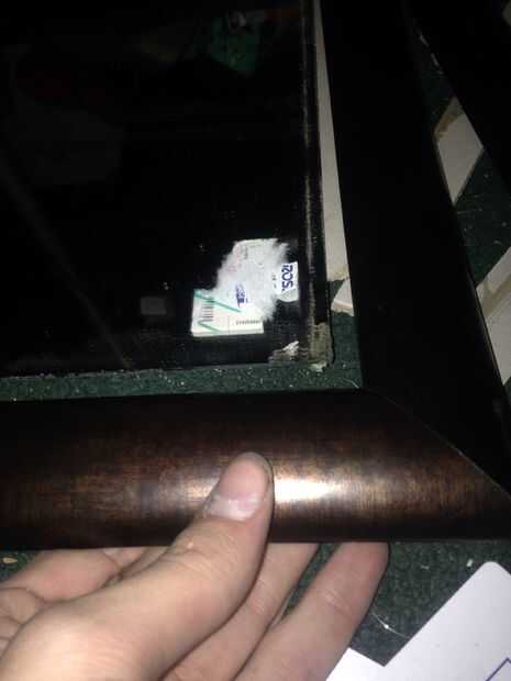 La primera cosa a hacer es sacar ese marco viejo tonto. En la mayoría de los casos todo lo que necesitas hacer es suavemente tire de un lado a la vez, el autobús si la parte de atrás tiene papel y grapas, cortó todo el papel y la madera contrachapada/aglomerado todos.