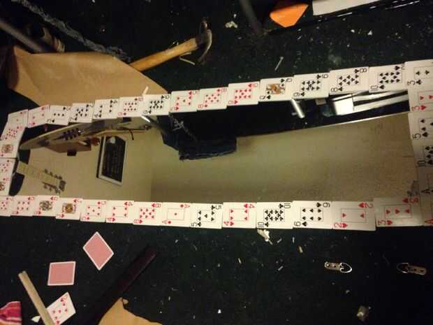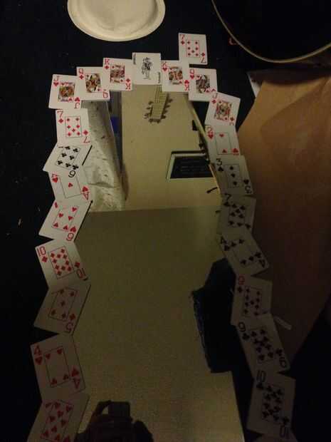 Ahora esta es la divertida parte. Toma tu baraja y coloque abajo las tarjetas sobre el área donde estaba el viejo marco. Usted puede hacer esto sin embargo quiero, pero me gusta estrecho, escalonada o al azar. NO pegar aún, causa allí es más