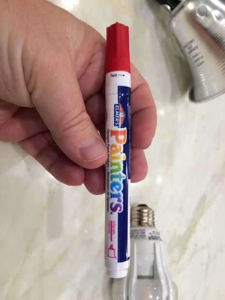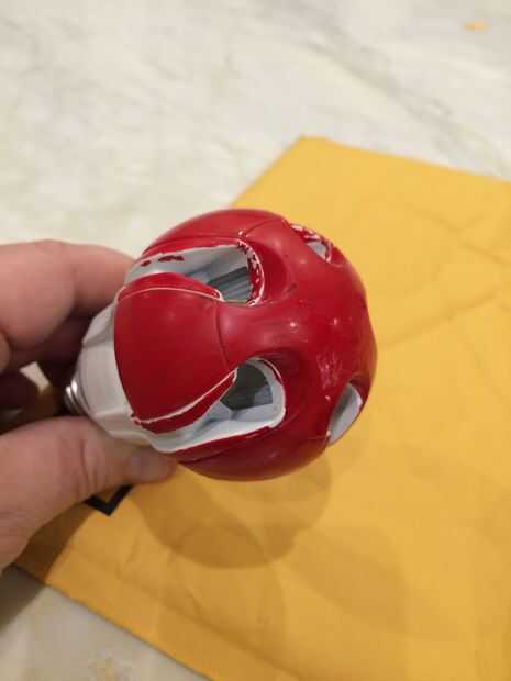 Aquí está la lámpara ahora roja después de ser pintada por la pluma...