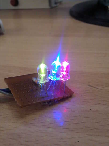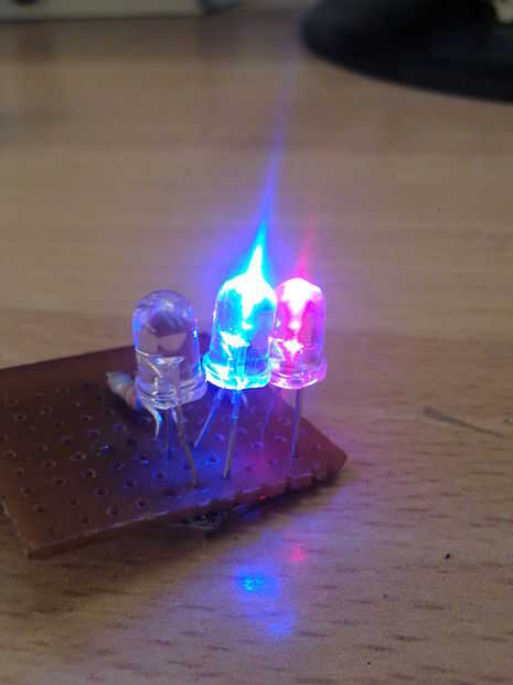 Mientras que un parpadeo de 3 colores de un cátodo común RGB LED es simple me pareció un poco tedioso obtener el mismo resultado de un ánodo común uno debido a mi conocimiento muy básico de ARDUINO UNO de programación. Así que me di cuenta de un circ