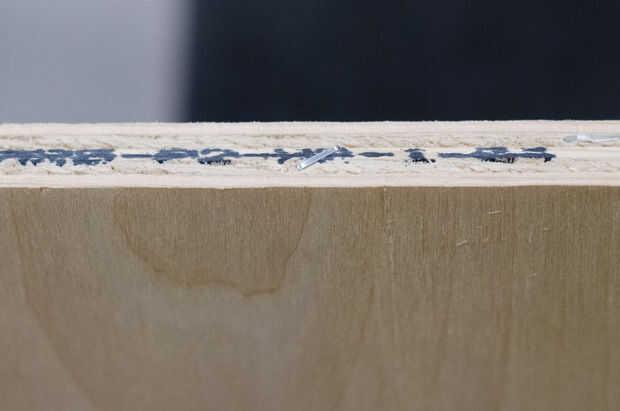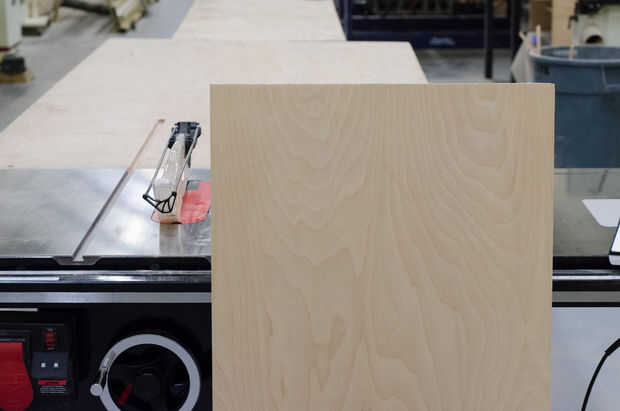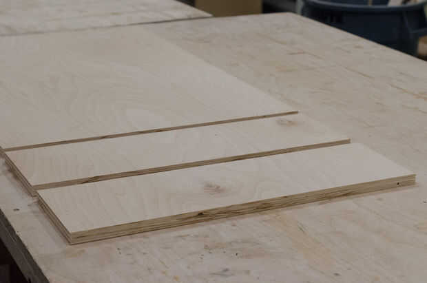 Hice tres cortes en la mesa de la sierra: uno para separar la parte superior de los paneles laterales, uno para cortar el primer panel lateral y otro para recortar el segundo para que coincida con el primero.