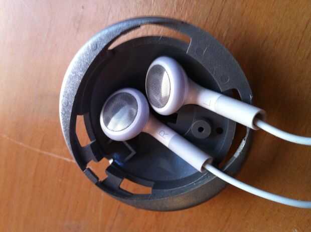 En primer lugar, desea que pase el cable de tus auriculares a través del agujero en tu caso (si tienes uno), pero salen los brotes colgantes. No colocarlos en la caja todavía.