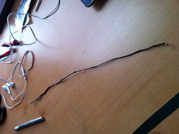 Luego el cable por el lado de la cubierta y enróllelo alrededor del punto donde el cable sale de la carcasa. Lo hice dos veces para mantener el alambre en su lugar, así como proporcionar estabilidad a la earhold.