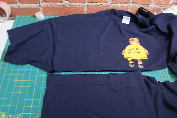 Luego corté la camiseta más grande (mina era 4XL porque quería que sea más largo) por debajo de las mangas. Esto creó un gran cilindro que era por lo tanto demasiado grande para mi cuerpo. Para hacer este tamaño más apropiado, he quitado seis pulgadas desde el lado y cosido los laterales mal para crear un cilindro más pequeño (lamentablemente no tengo fotos de este paso).