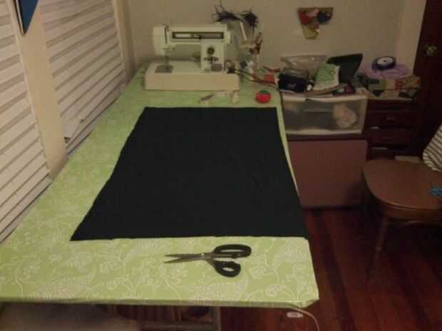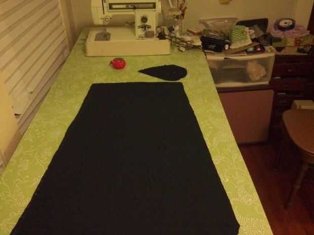 En primer lugar, cortar sobre una tira ancha de 10 pulgadas de mi remanente. Esto es lo que hizo los bolsillos de. La izquierda sobre pieza fue aproximadamente de 44 pulgadas de ancho. Doblé por la mitad. Me mide mi cintura y dividido por dos. Marqué las medidas encima de la tela, centrado tanto como sea posible. Entonces usando mi medición de cinta como una guía, me marcó una línea diagonal hasta el extremo opuesto a cada lado luego corte a lo largo de esas líneas. Para terminar la forma básica de mi falda, marcó y cortar una curva leve en la parte inferior.