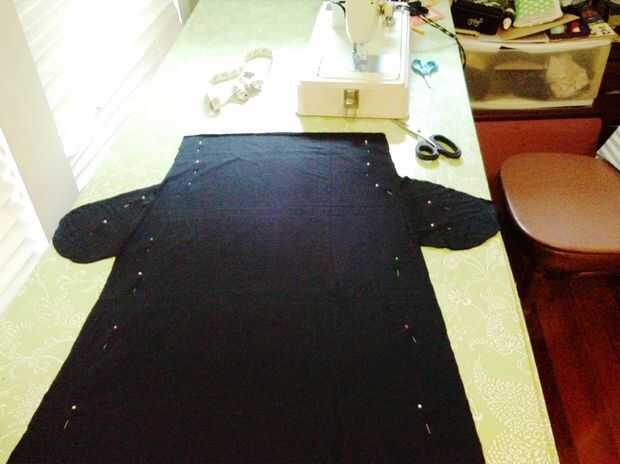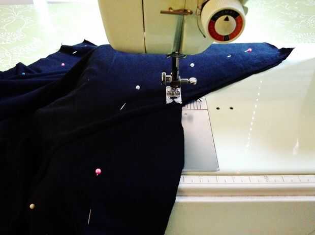 Una vez que la falda se coloca juntos, derecho con derecho tocando y todo lo cubrió cuidadosamente, coser los lados. IR ALREDEDOR DEL EXTERIOR DE LOS BOLSILLOS! Que necesitaba levantar mi pie prensatelas al principio y al final de cada bolsillo para volver a colocar las cosas para que las costuras se vería bonitas.