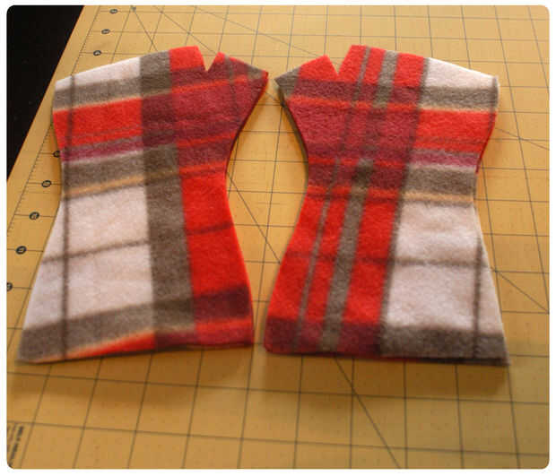 Cortar la tela - Asegúrese de colocar la tela para que la dirección de la recta es horizontal a su proyecto - por lo que permite algún estiramiento y espacio para tus manos. Se puede doblar la tela y el diseño su pieza de patrón, pin, después recórtalo y repita.