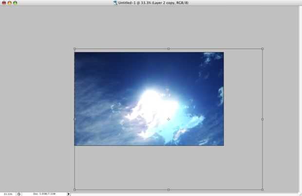Ahora, coge la capa superior y ampliar la imagen hacia una esquina.