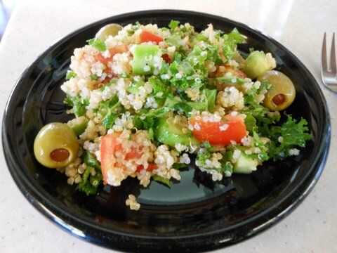 Simple fresco de verano de quinua y la col rizada "Ensalada de Tabouli"-vegana, libre de gluten