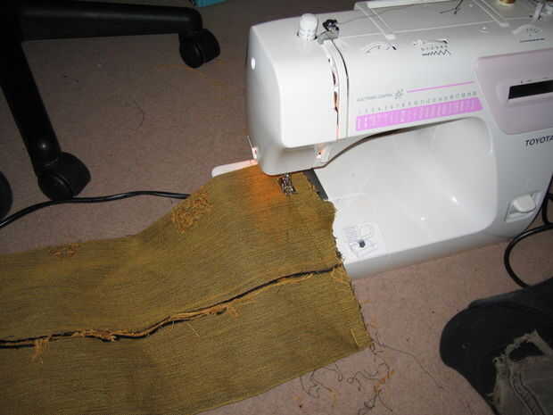 Coser en la parte inferior de la bolsa en ángulo recto con el borde largo. Puede prender si quieres pero no lo hice.