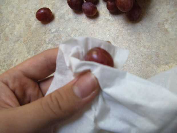 El segundo cuadro muestra que las uvas que estoy usando son muy sucias y que probablemente no quieres en tu foto. simplemente se pulen con un pañuelo de papel (tercera imagen) y usted debe estar bien.