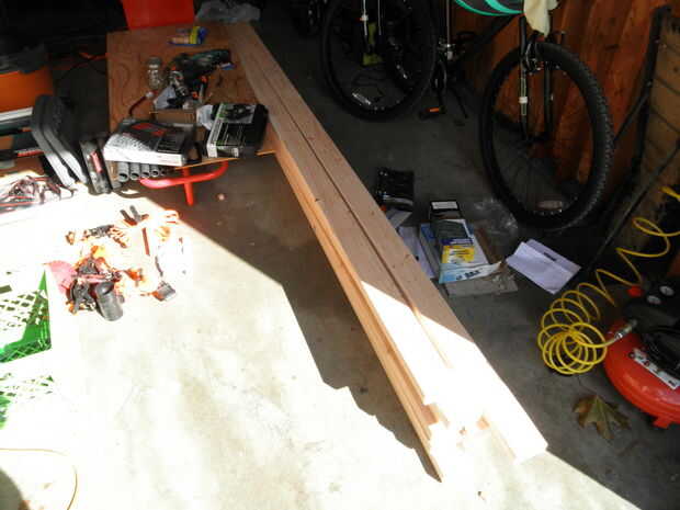 Recientemente tengo un garaje que empecé a mover herramientas en. Ahora necesito una estantería en el barato. Esto es hecha completamente de 12 2x4x8s (The home depot 31 dólares). Ya tenía las otras herramientas de mano que necesitaba de otros proyectos:
