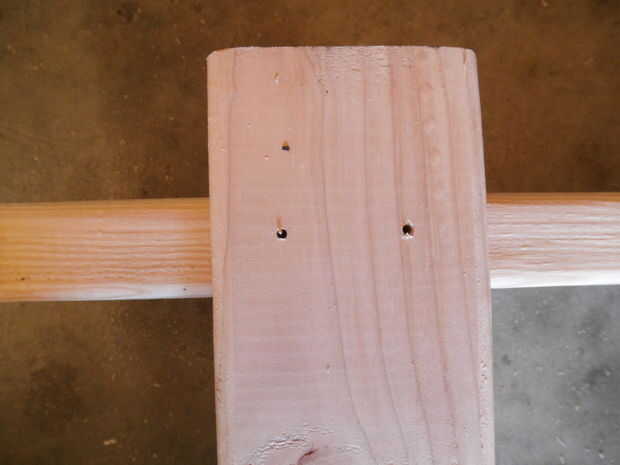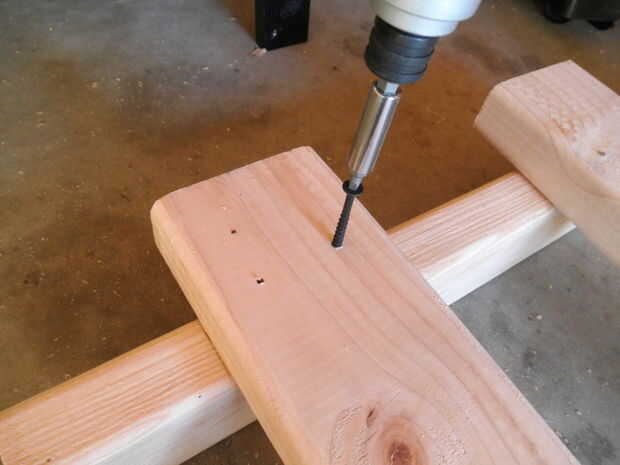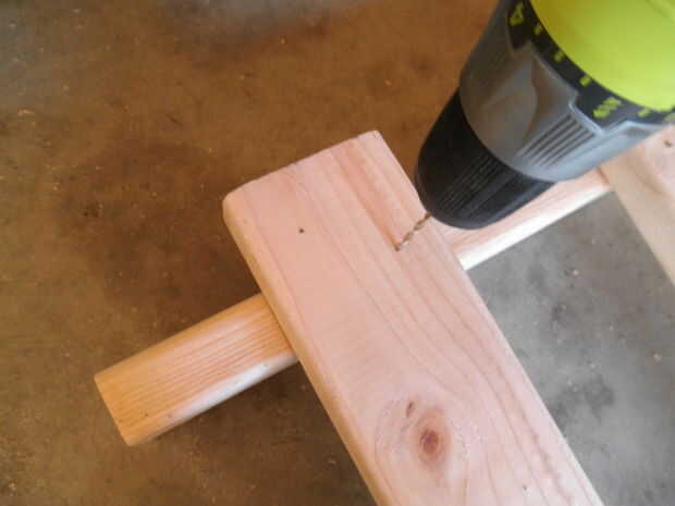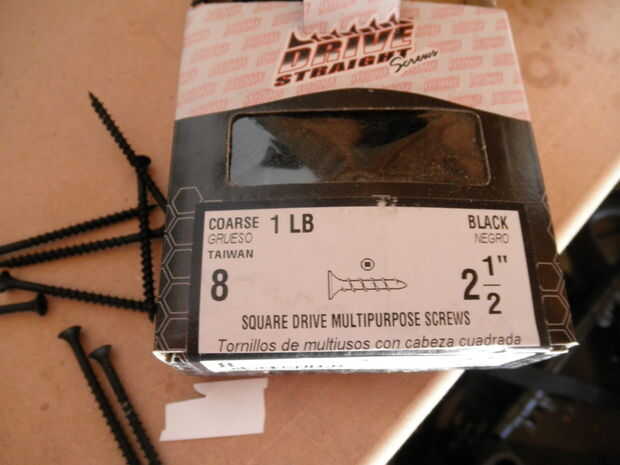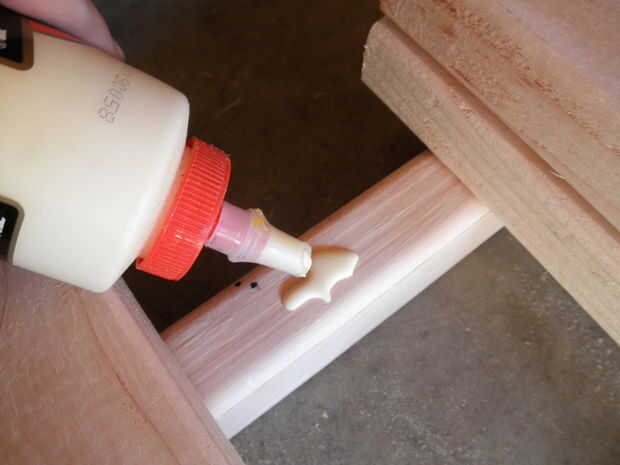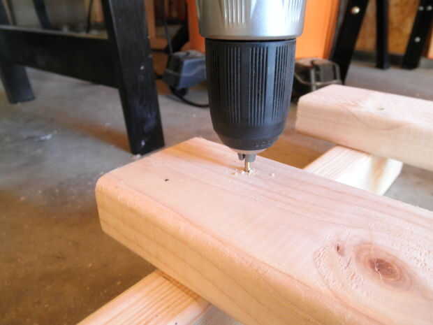 Después de que el pegamento esté seco nos podemos voltear las Asambleas de la plataforma sin miedo a que deslice alrededor. Usar sus taladro y 1/8" Taladro broca taladro dos agujeros en cada pieza de estante. Los agujeros deben ser aproximadamente 2 pulgadas de profundidad. Después de taladrar todos los agujeros de la tirada una conducción poco y unidad 2.5" tornillo en cada orificio.