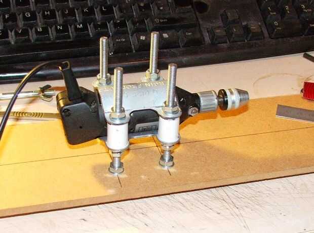 Si utiliza tornillos M6 para esto entonces una vuelta completa de las tuercas se eleve o baje el taladro exactamente 1 mm.