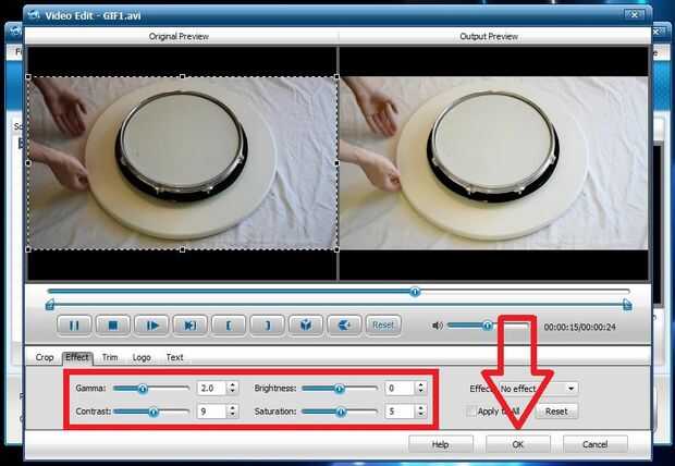 • Para corregir el color, contraste, brillo y saturación de ti video, mueven los controles deslizantes y haga clic en aceptar