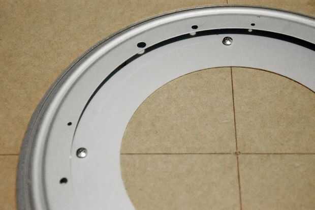 Uso de la X que indica el centro del círculo, línea de las cuatro líneas con los cuatro agujeros de tornillo en el rodamiento. Taladre orificios guía y fije con tornillos.