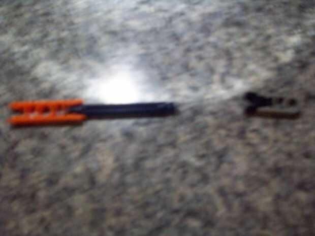 Hola, este es mi KVG lanzagranadas. Dispara unos 15 a 35 pies. Usted puede hacer más pequeño sobre armas pequeñas y también puedes hacerlo más grande con más barras a KVG gran pistola. Este es un tamaño medio. Usted puede conectar a cualquier arma co