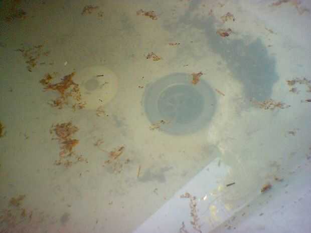 Atacó la manguera a la mesa con un pequeño trozo de alambre, para mantener en su lugar.