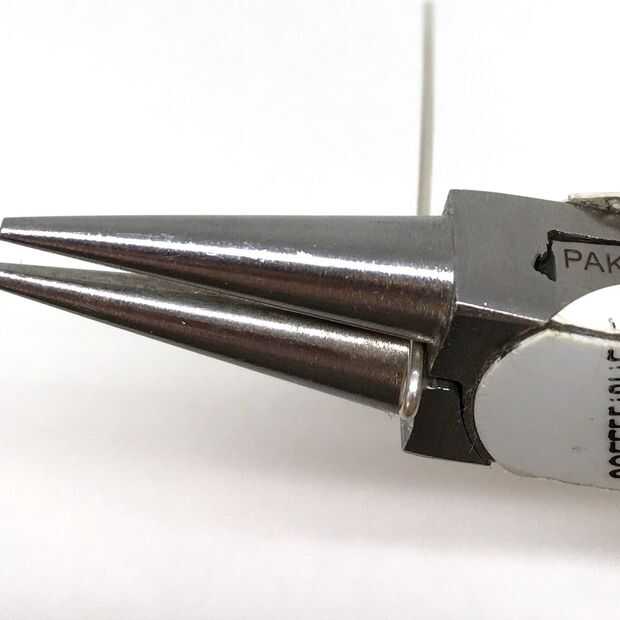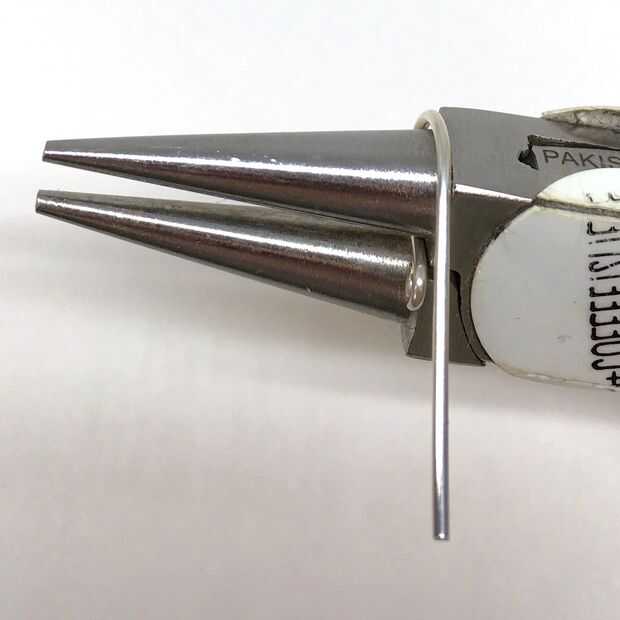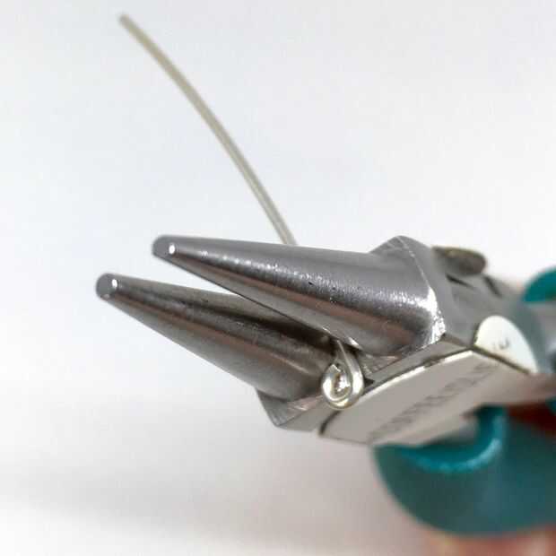 Agarre el cable detrás de la anilla, con la mayor parte de los alicates de punta redondeos grandes y forman la parte superior del cable de la oreja, como se muestra en las fotos.