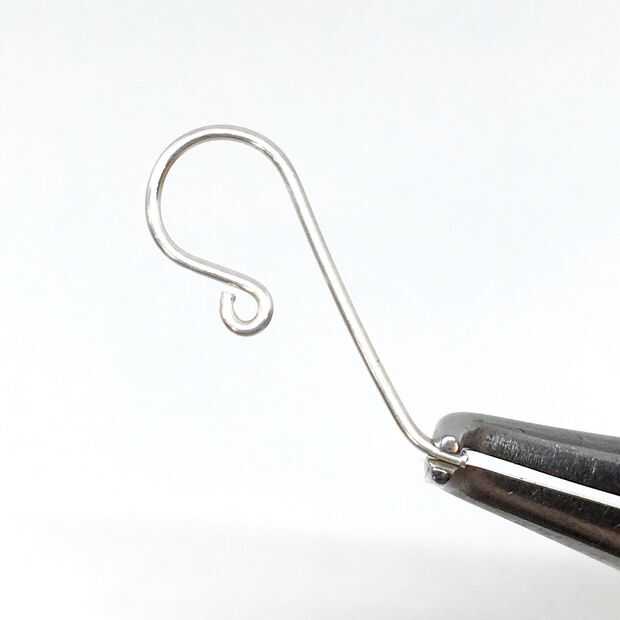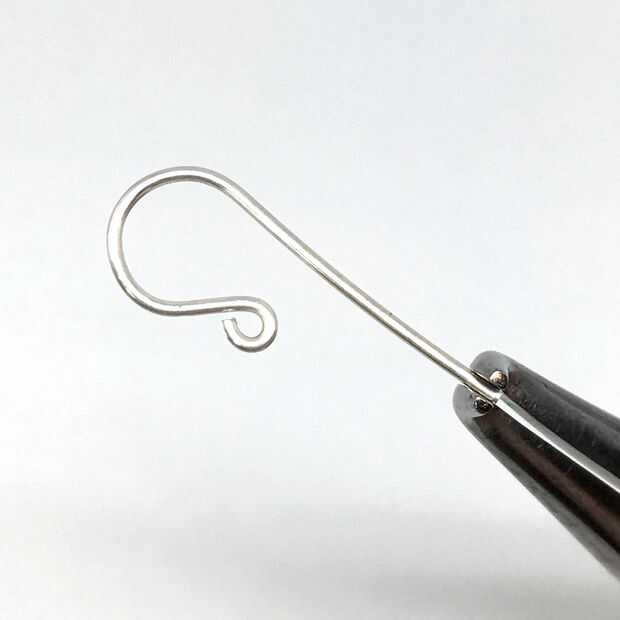 Utilice el extremo de los alicates de nariz de cadena para tome el extremo del cable del oído, y forma una curva suave, como se muestra. Dependiendo de sus preferencias personales, puede dejar este paso, o hacer la curva más lejos hasta el alambre.