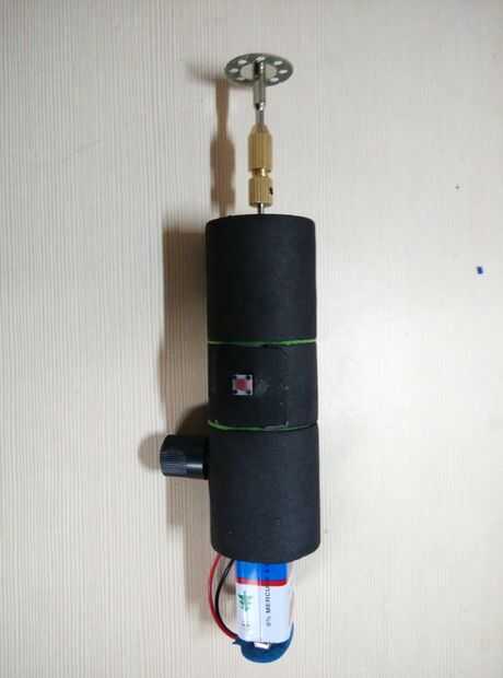 Conectar un capacitor a ambos extremos del motor. Y uno de los extremos al soporte de la batería y otro en el pulsador.