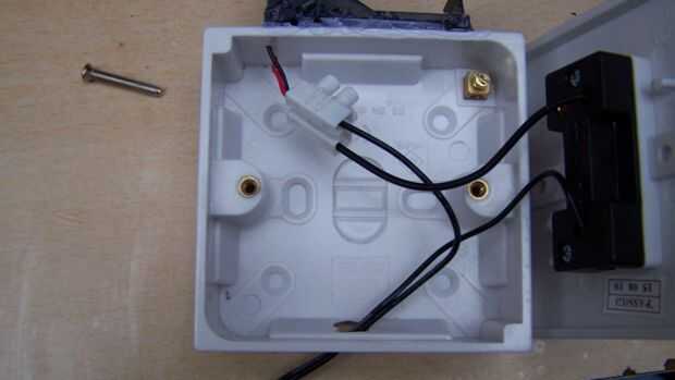 entonces perforado por la parte superior de la caja y el hilo de rosca por y conectado con bornes (puede soldar las conexiones si quieres) sólo con cable esta como lo haría cualquier otro interruptor pero por si acaso he incluido un diagrama de