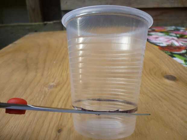 Cortar la Copa con las tijeras a la altura de 2 cm.