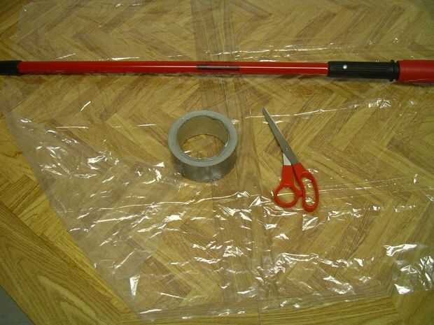 Arma secreta de Handy-Man: cinta aislante Bolsas de basura Palo de escoba Un dispositivo de contención de agua de tu agrado Tijeras Filtro del tanque de un pez Un pez muy comprensión. (Gracias a Winston)