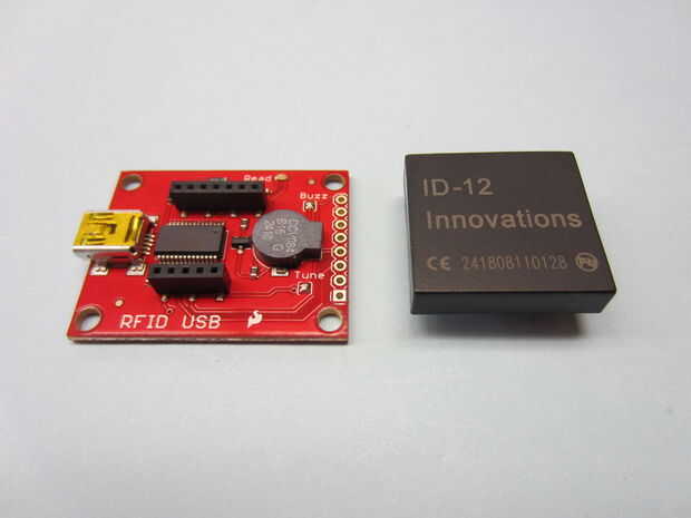 1. El lector de RFID de Sparkfun viene con la placa y el chip de lector RFID como dos componentes como se muestra en la primera foto.