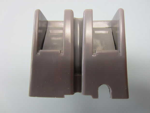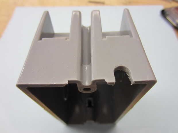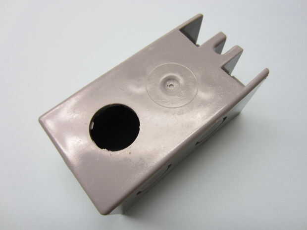 1. Con un destornillador de cabeza plana y un martillo con cuidado romper las pestañas que sujeta el tapón de knock-out en la parte superior de la caja de salida como se muestra en la primera foto.